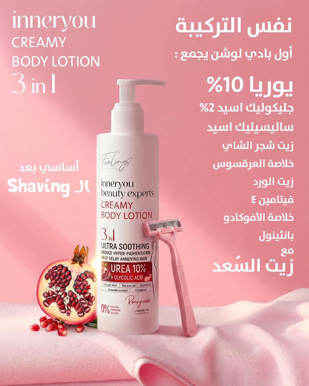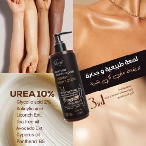 2️⃣ بادي لوشن برائحة رمان مثيرة شوجري جدا ♥️ يدمج 10% يوريا مع 2% جليكوليك اسيد + 1% ساليسيللك اسيد 👈 مع تركيز عالي من زيت السُعد
